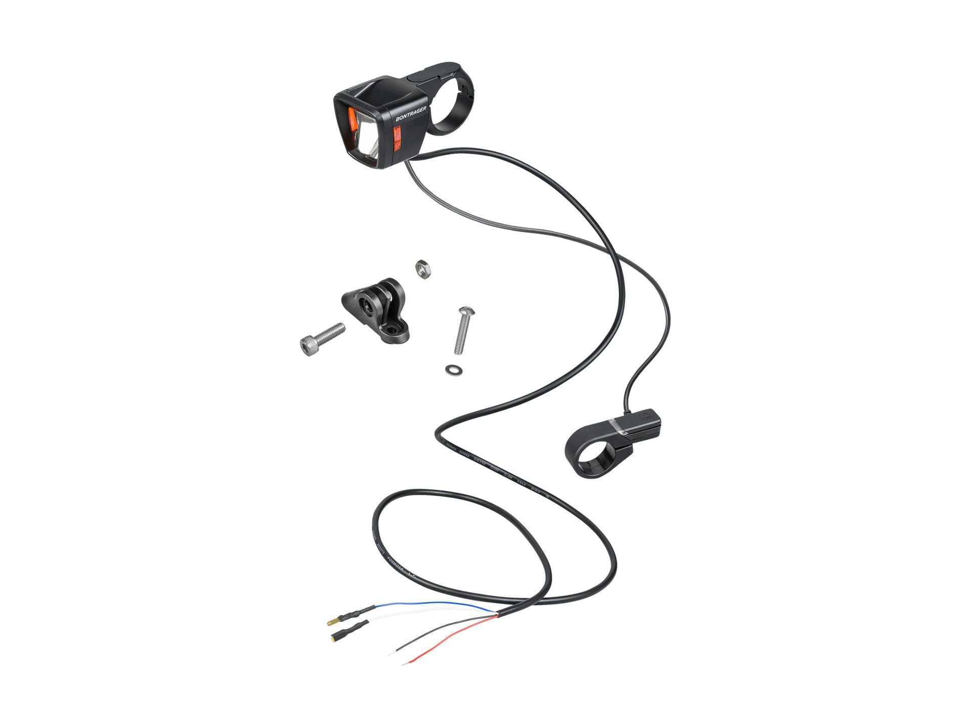 Paketti sisältää valon tankokiinnikkeellä, kiinteän piuhan, tankoon asennettavan kaukosäätimen.