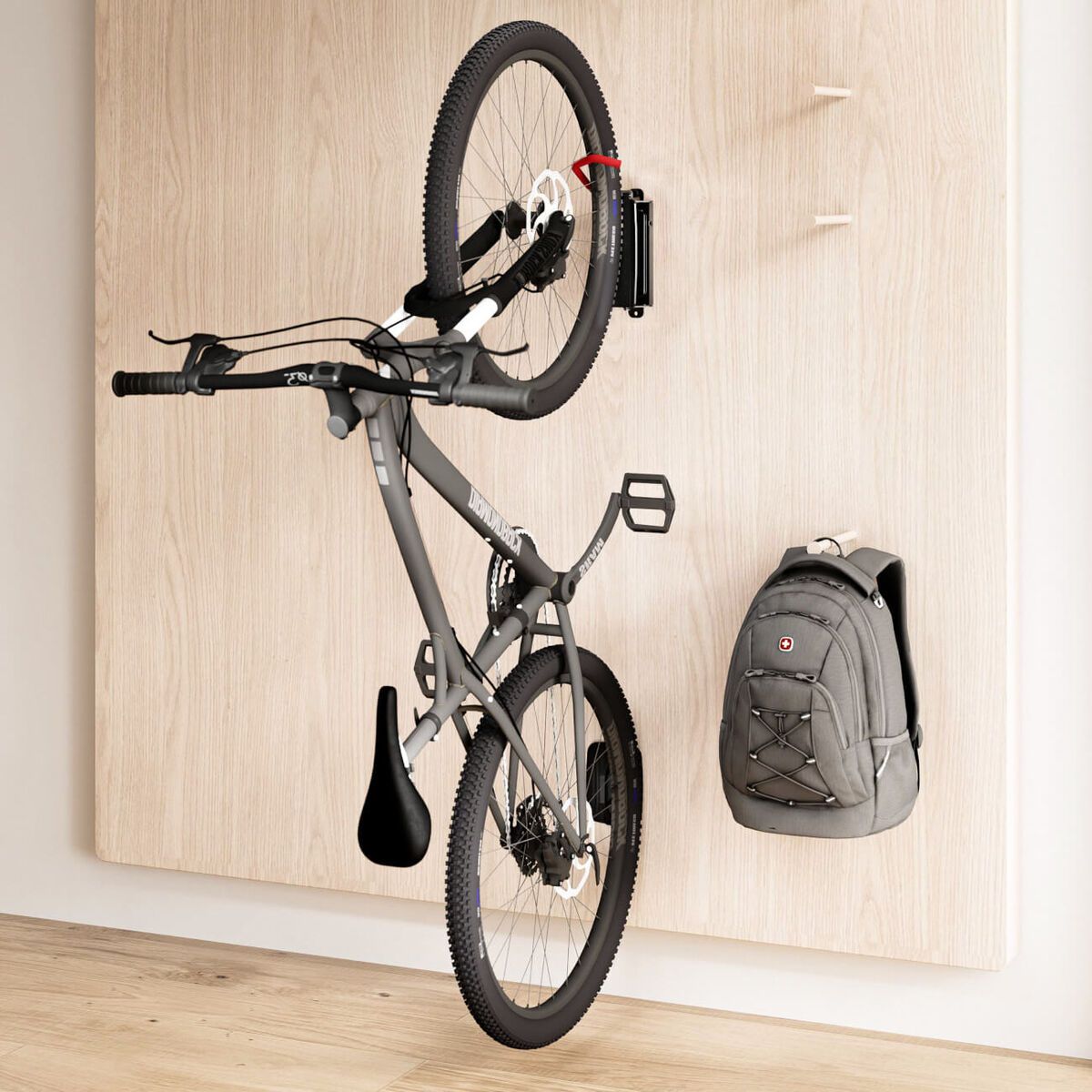 Helppokäyttöiseen HR10-telineeseen ripustetaan pyörä etuvanteesta. Monipuolisuutta lisää kääntömahdollisuus, jolla saat pyörän kulmaa muutettua jop 65 astetta. Pyörän saa siis erittäin helposti pois edestä vaikka olohuoneeseen!