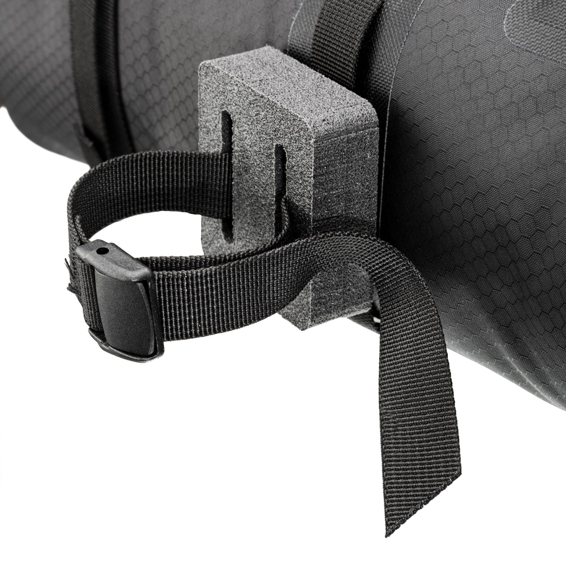 Molemmissa päissä olevien rullasuljentojen ansiosta pääset aina nopeasti käsiksi varusteisiisi. Ulkopuoliset kompressiohihnat mahdollistavat lisävarusteiden kiinnittämisen laukkuun. Lisäksi Handlebar-Pack sisältää neljä koukkua, joiden avulla voit kiinnittää siihen ORTLIEB Accessory-Pack -lisälaukun, jos tarvitset lisää säilytystilaa. Kiinnitysjärjestelmä, joka koostuu välikappaleista ja kahdesta vahvasta tarranauhakiinnikkeestä, takaa turvallisen kiinnityksen mihin tahansa ohjaustankoon – myös hiilikuituisiin ohjaustankoihin. Laukun jäykistetty sisus ja runkoputkeen kiinnitys lisäävät vakautta kaikissa maastoissa.
