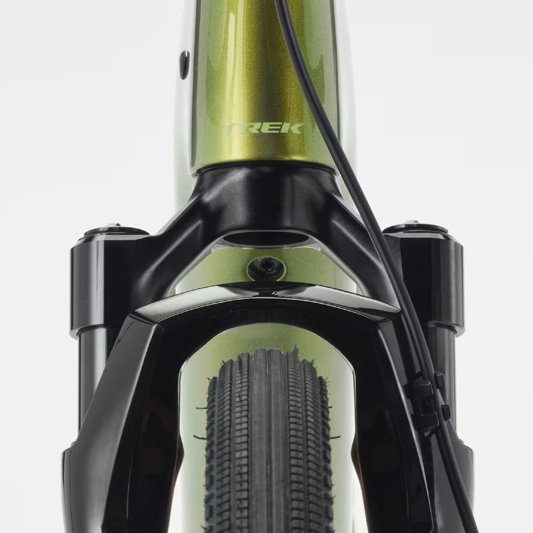 RockShox Rudy XPLR -keula käyttää Solo Air -ilmajousta, joka mukautuu ajajan omaan painoon ja ajoalustan epätasaisuuksiin. Kun eturengas osuu kiviin, uriin tai karkeisiin sorapaloihin, 40 mm:n etujousto vaimentaa iskut ennen kuin ne välittyvät ohjaamoon ja käsiin. Kuljettajan ei tarvitse tehdä muuta kuin ajaa – joustokeula parantaa hallintaa, vähentää käsien rasitusta ja tekee Trek Checkpoint+ SL 7 AXS:llä ajamisesta rentoa ja varmaa tasaisilla ja epätasaisilla teillä.