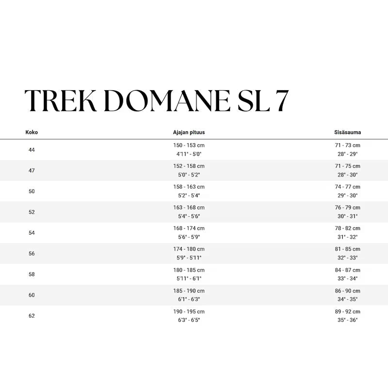 Trek RCS Pro, -7 asteen kulma, pituus 60mm (44), 70mm (47), 80mm (50), 90mm (52, 54), 100mm (56, 58), 110mm (60, 62)
