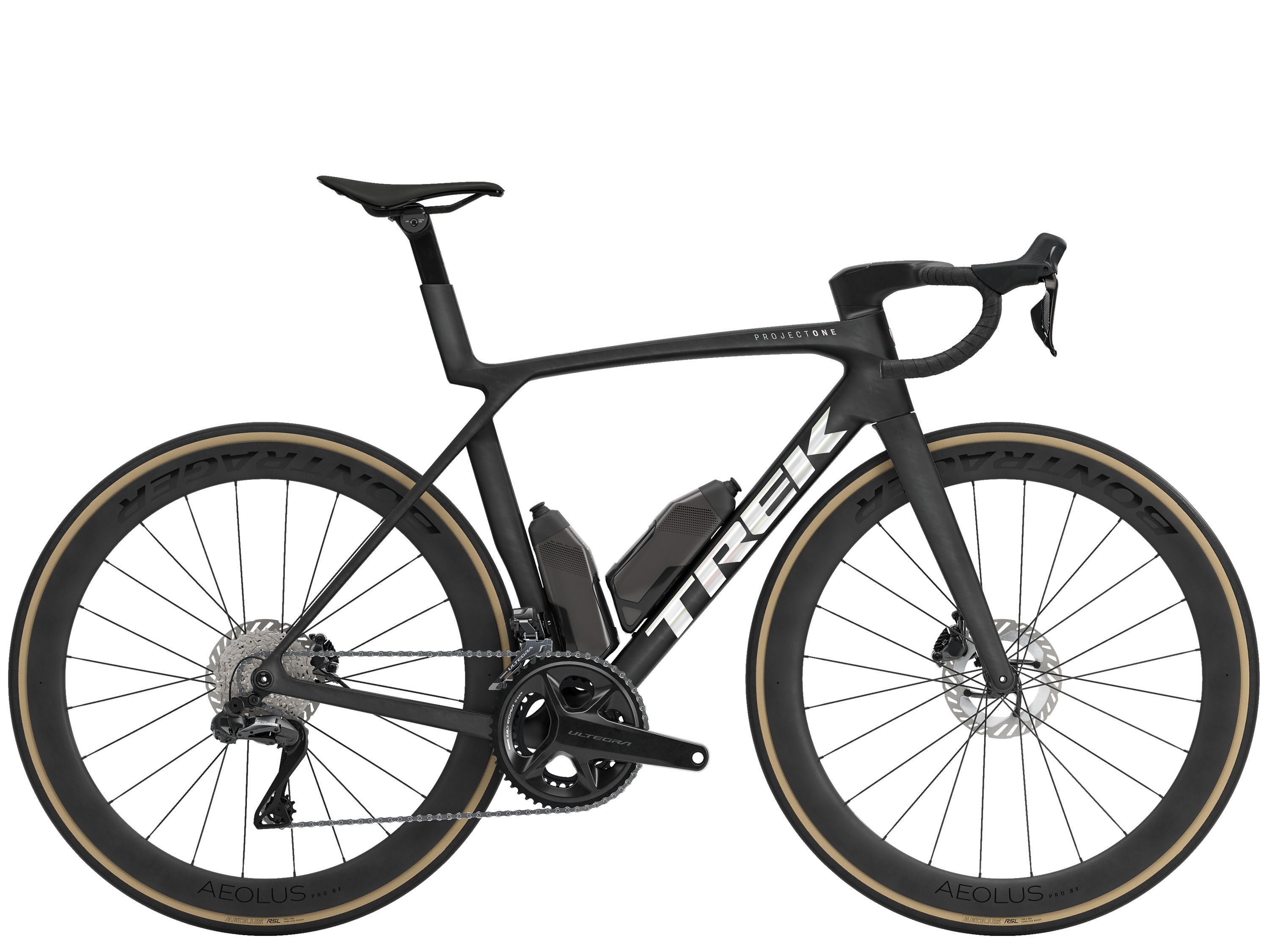 - Yksiosainen Trek Aero RSL-ohjaamo ja Bontrager Aeolus Pro 51-hiilikuitukiekot